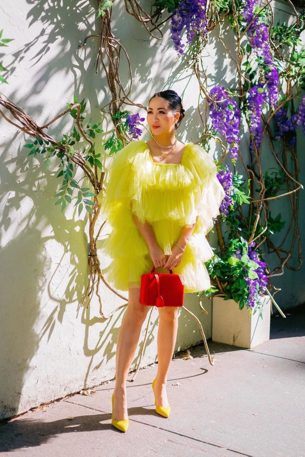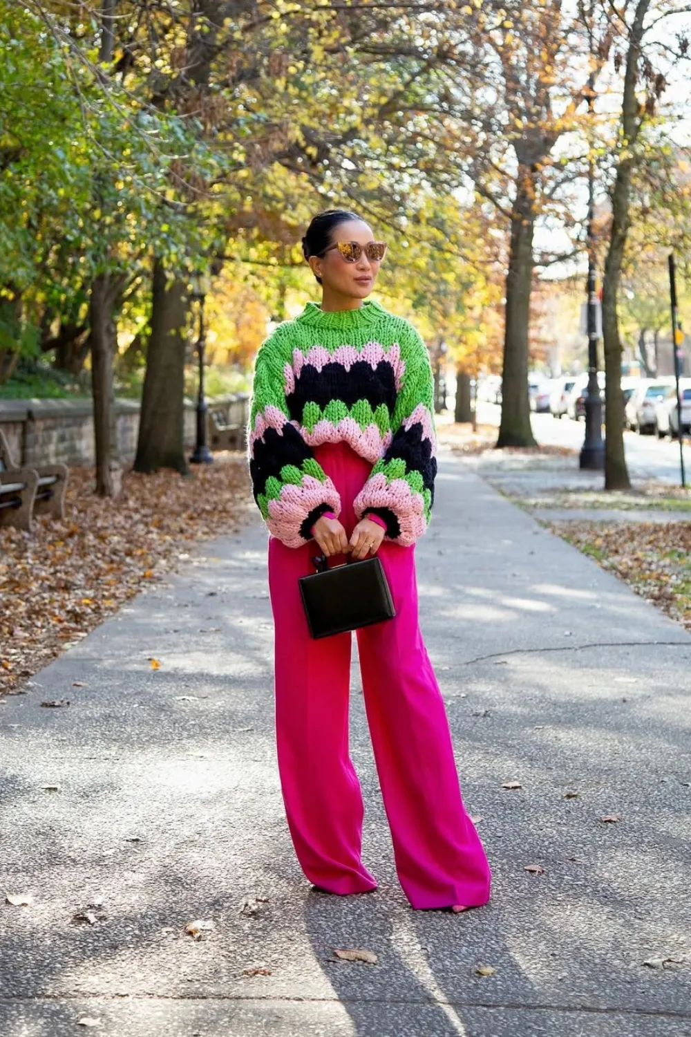 Cô chú trọng cân bằng tỷ lệ dài, ngắn, to, nhỏ của trang phục với hình thể.